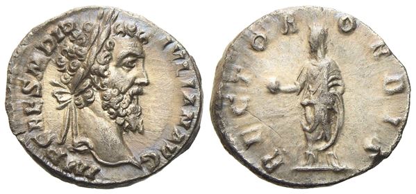 Didius Julianus (193), Denarius, Rome, March 28th-May AD 193; AR (g 2,95; mm 17,9); IMP CAES DID IVLIAN AVG, laureate head r., Rv. RECTOR ORBIS, Didius Julianus, togate, standing l., holding globe in outstretched r. hand and roll in l. RIC 3; C 15. Good extremely fine / about Fdc. Refined style.