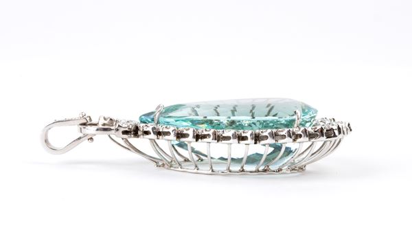 Aquamarine diamond gold and pendant