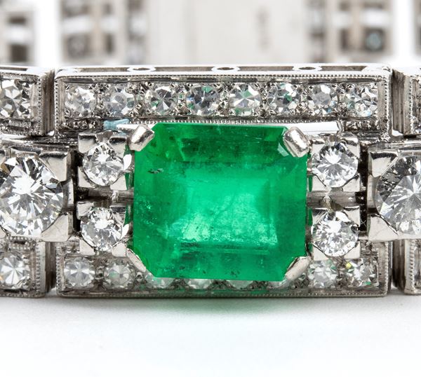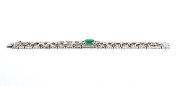 Art Déco emerald diamond platinum bracelet, Italy, 1930s