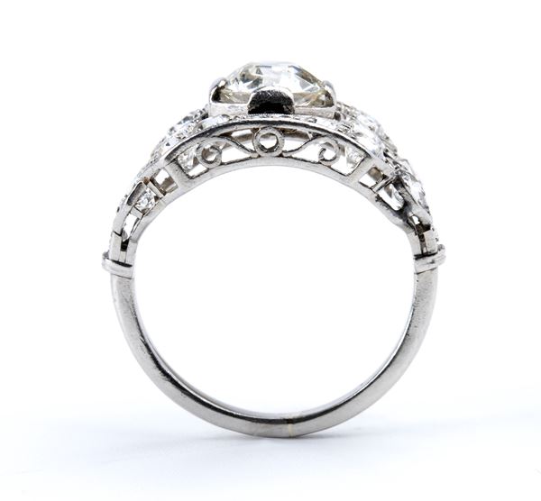 Art Déco Platinum & Diamond Cocktail Ring, 1930s