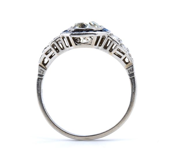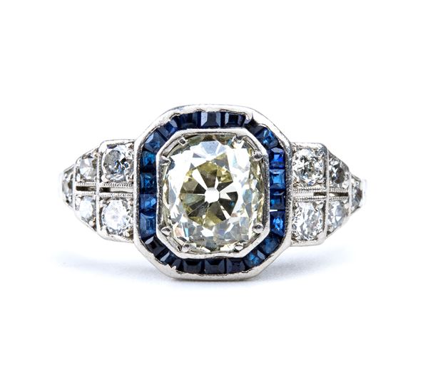 Art Déco Platinum Sapphire & Diamond Ring, 1920s
