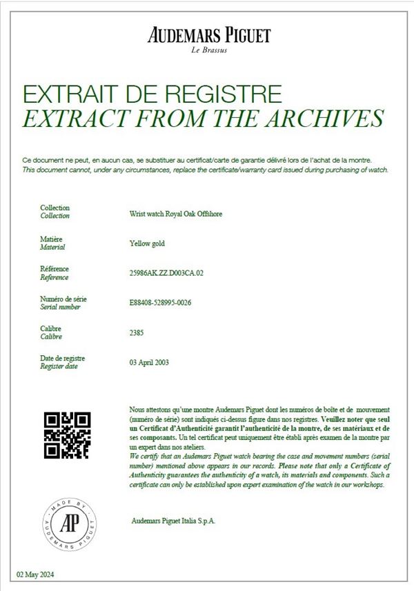 Royal Oak Off Shore limited edition: gold wristwatch ref. 25986AK.ZZ.D003CA.02, 2003