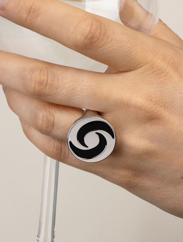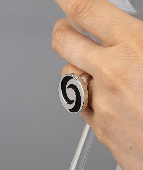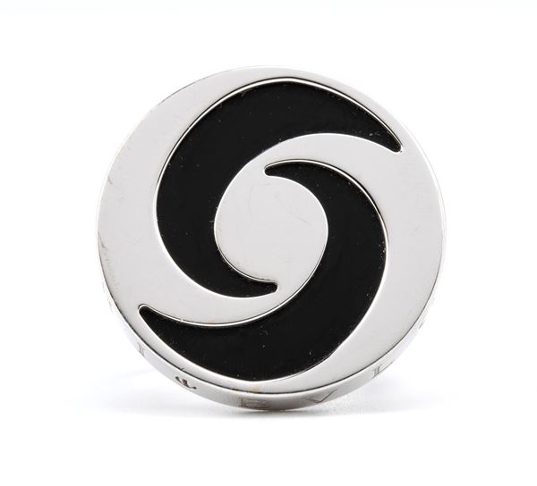 18k white gold optical spinning with steel mechanism and onyx disc.