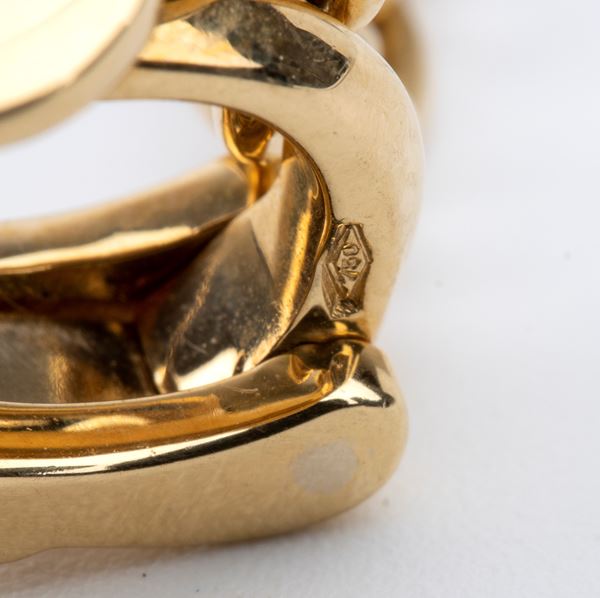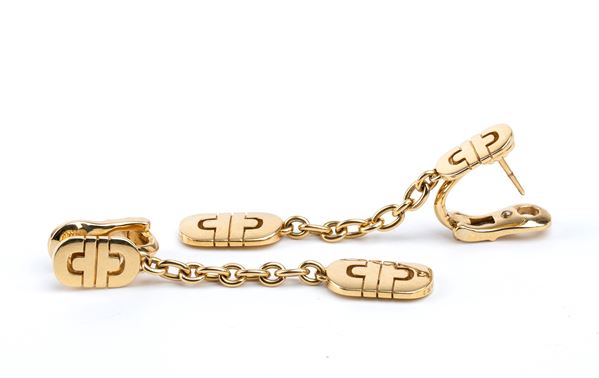 iconic and vintage Bulgari Parentesi 18k yellow gold earrings, composed of sculpted geometric links.