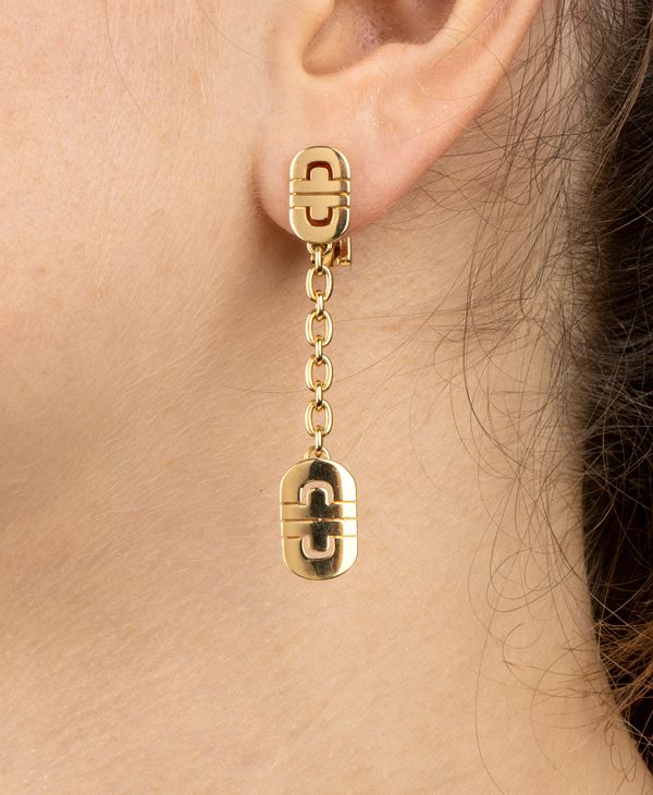 Parentesi Collection: pair of drop gold earrings