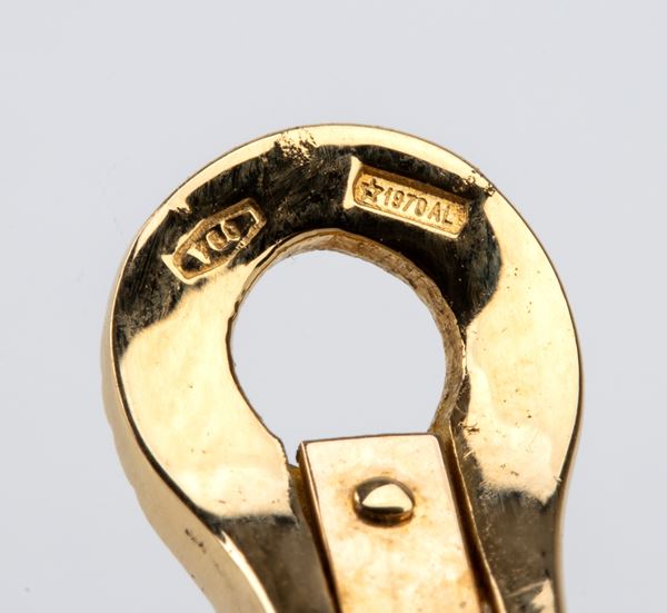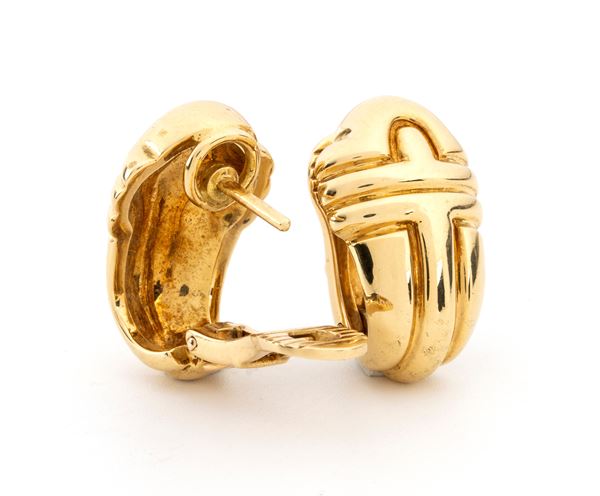 iconic and vintage Bulgari Parentesi 18k yellow gold earrings, composed of sculpted geometric links.