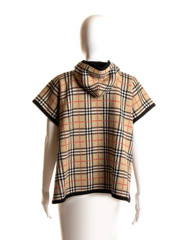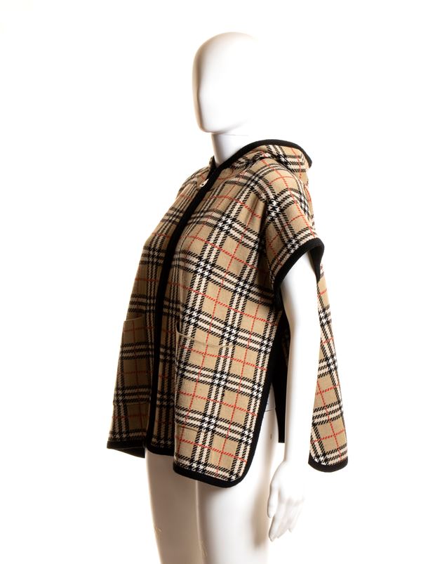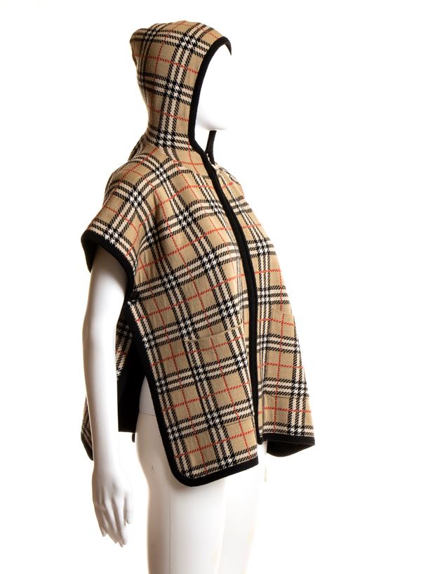 Burberry wool cape with check pattern, asymmetrical length (shorter back, longer front)