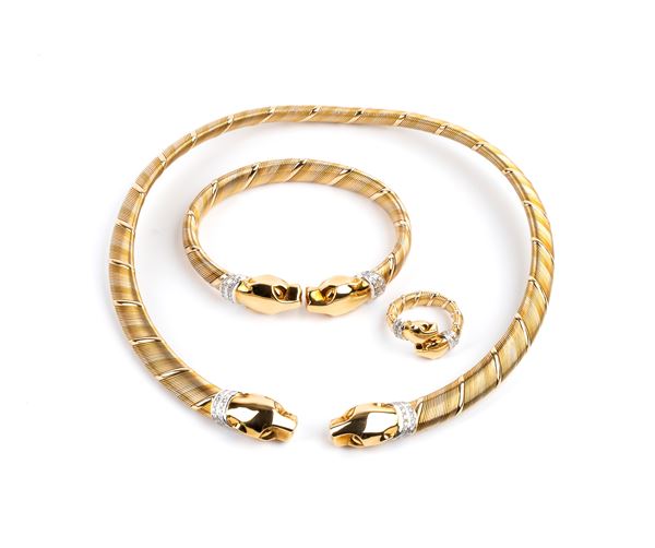 Parure panthère with necklace, bracelet, and ring, 1990s