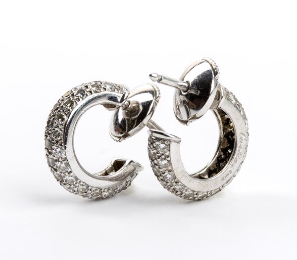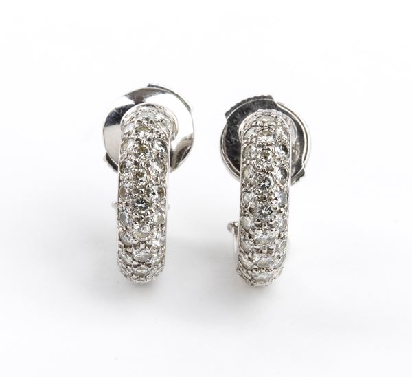 each of hoop design, pavé-set with brilliant-cut diamonds.