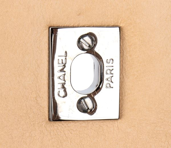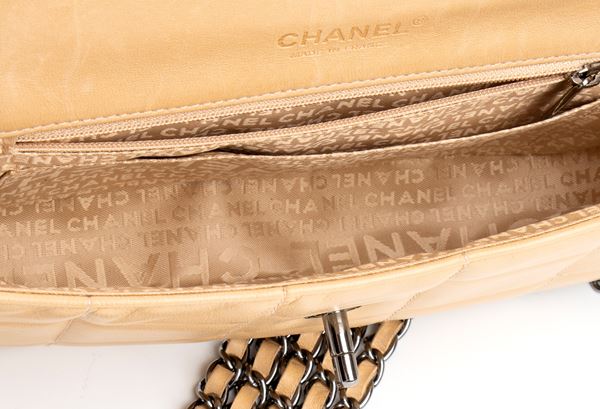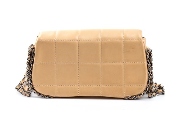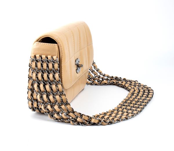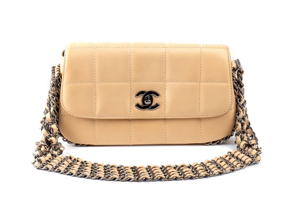 Chanel Choco Bar Multichain Edition Bag in beige lambskin, equipped with a five-loop braided chain that passes around the bag and makes it unique, with dustbag and box.