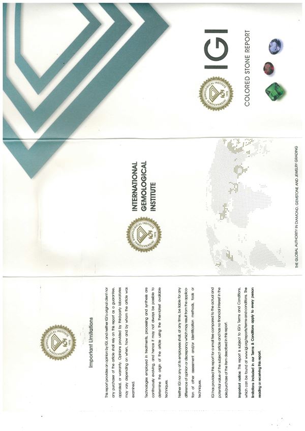 Accompanied by IGI (International Gemological Institute) jewelry report.