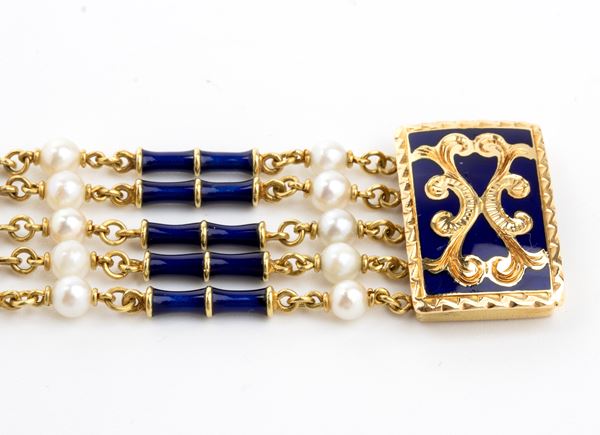 Gold bracelet with pearls and enamels