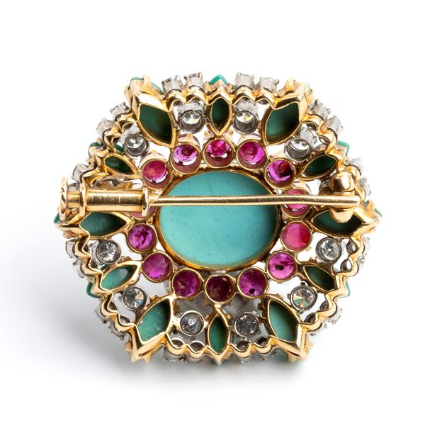 Gold brooch with turquoise, rubies, and diamonds, 1960 - 1970