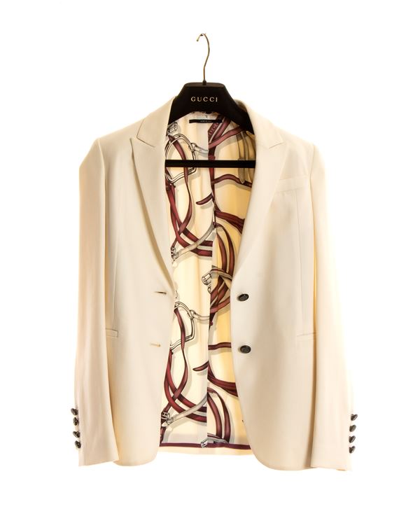 Gucci women’s suit from the Equestrian collection, made of wool and silk, including its original hanger.