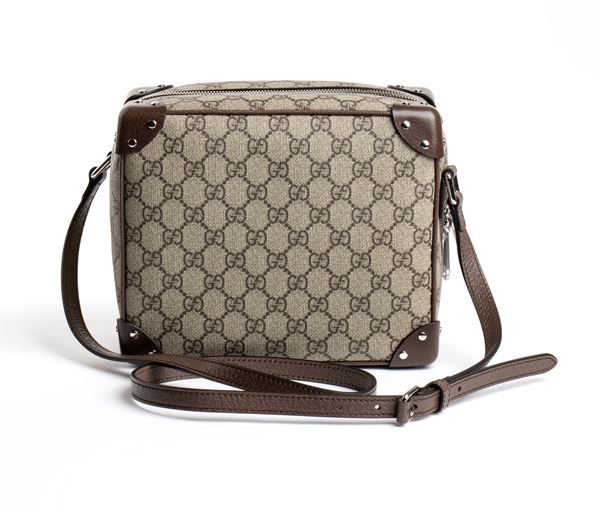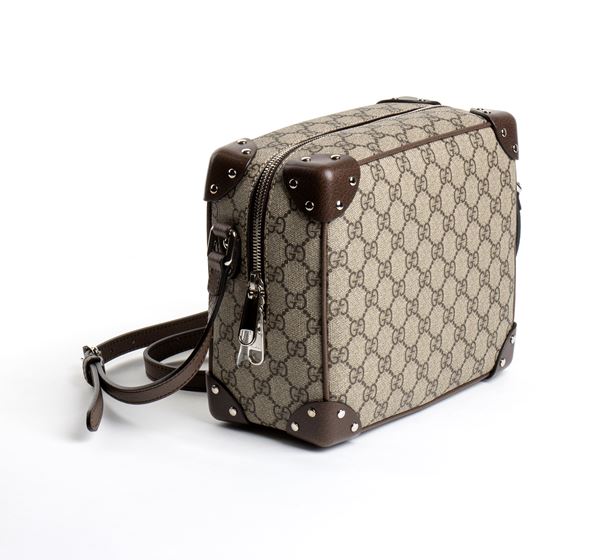 Gucci Messenger bag in brown canvas and leather with red canvas interior.