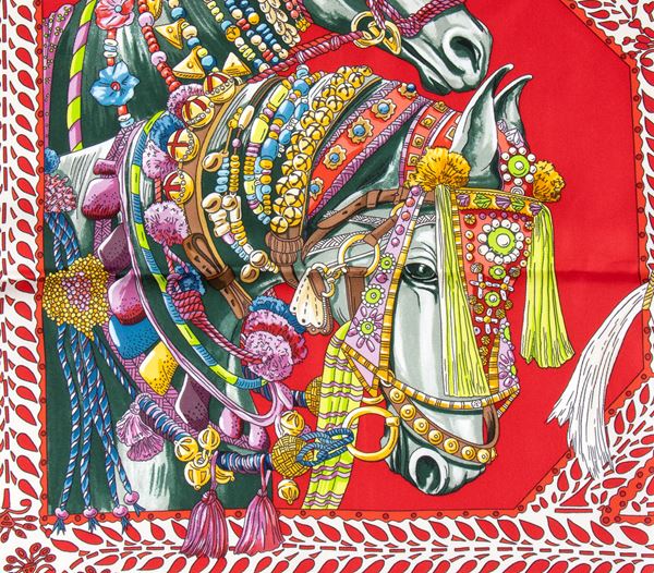 Hermès La Dans du Cheval Marwari foulard, 100% Silk.