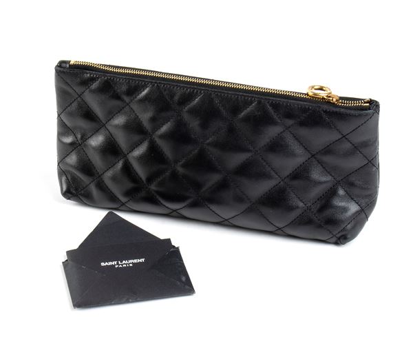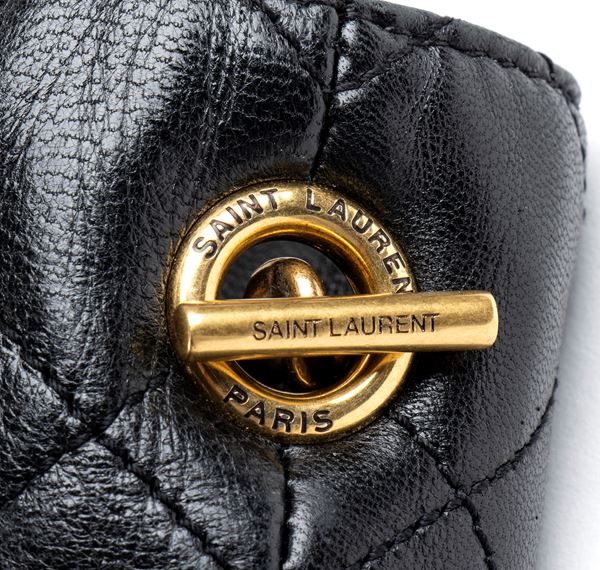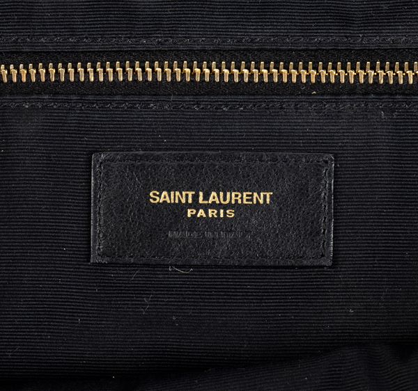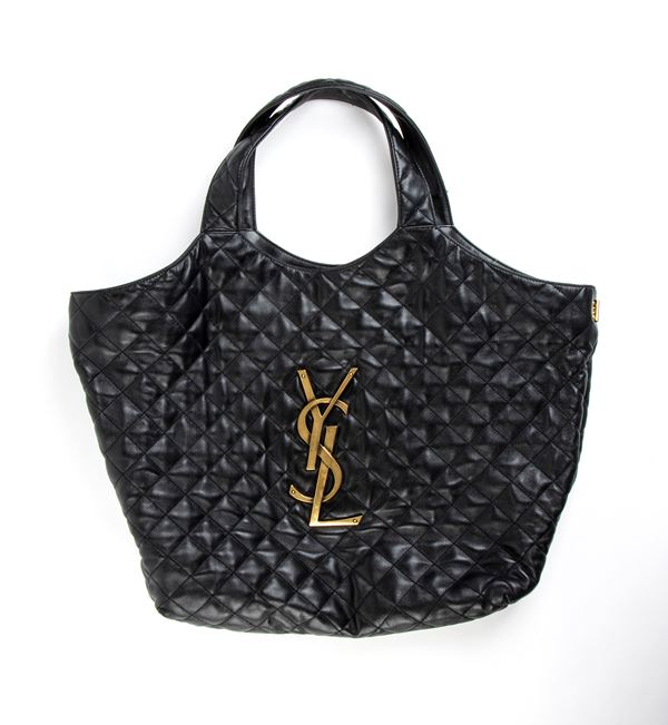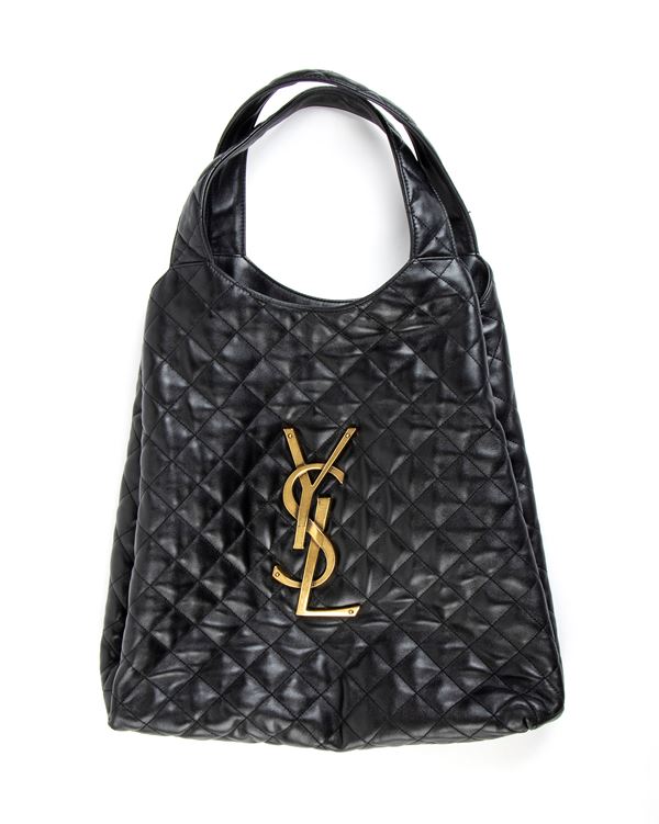 ICARE Maxy Shopping Bag in quilted lambskin with toggle closure, removable zip pouch included, decorated with checked quilted stitching and the YSL jewel logo.