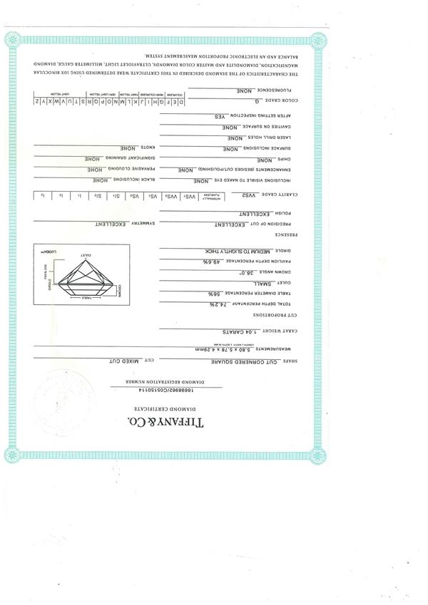Hallmarked "1999 - TIFFANY & Co - Lucida - PT 950 - 345 MI - Pat 5970744 et al - 16698962 - 1.04 ct".