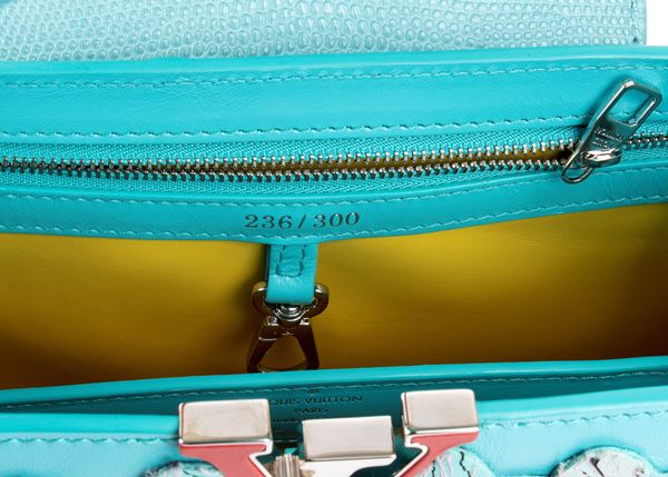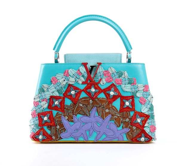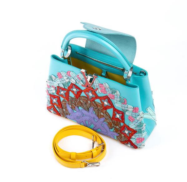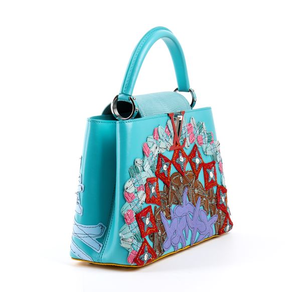 Louis Vuitton Arty Capucines Limited Edition by Tschabalala 2019, the bag is made of calf leather and hints of lizard leather, the bag features an upper laminated leather handle with stylized links, with a yellow leather interior, with dustbag and box.