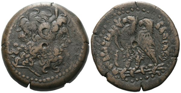 Ptolemaic Kings of Egypt. Ptolemy IV or Ptolemy V (222-205/4 BC or 204-180 BC). Æ (28 mm, 17.71 g). Alexandreia. Bearded head of Herakles r., wearing lion skin headdress. R/ Eagle with closed wings, standing l. on thunderbolt. Svoronos 1492 (Joint reign o