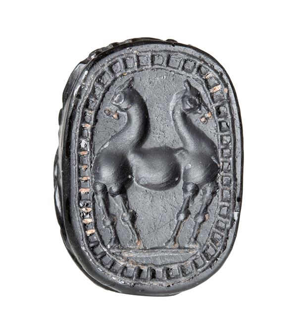 A large black jasper Phoenician engraved scarab., 5th-4th century B.C. circa