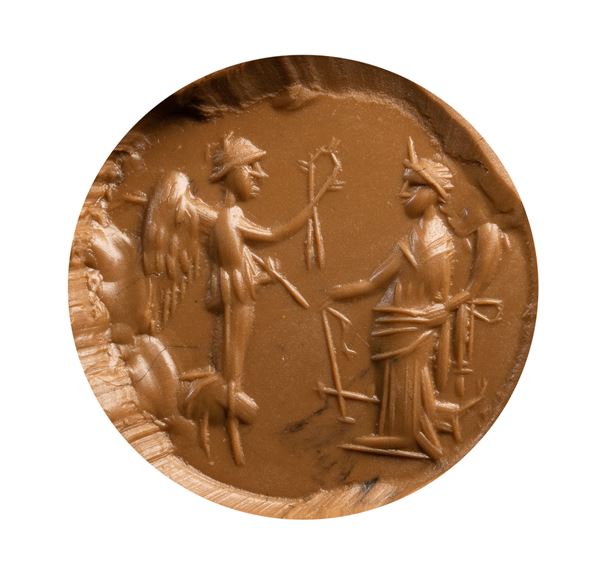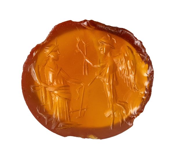 A large Roman carnelian intaglio. Fortuna-Tyche with Nike., 2nd century A.D.