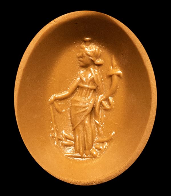 A Roman agate intaglio. Fortuna-Tyche., 2nd - 3rd century A.D.