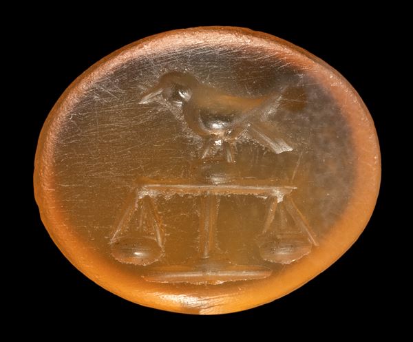 A Roman carnelian intaglio. Bird on a scale., 2nd - 3rd century A.D.