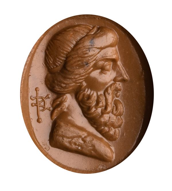 A Roman carnelian intaglio. Bust of an herm., 1st century A.D.