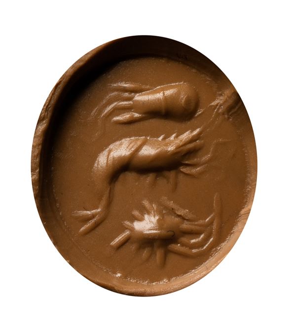 A Roman carnelian intaglio. Sea creatures., 1st - 2nd century A.D.