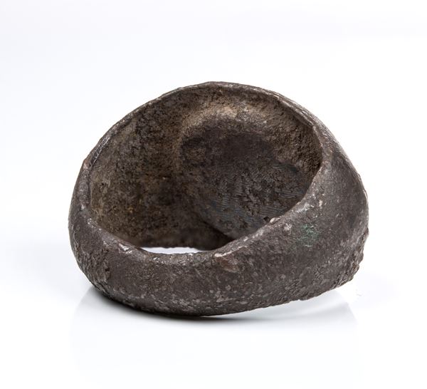 Bucolic scene with three pigs mating near a bush. Groundline.  The metal is crystallized. Wear marks. This scene can be considered an erotic scene between animals, much loved by the Romans.
