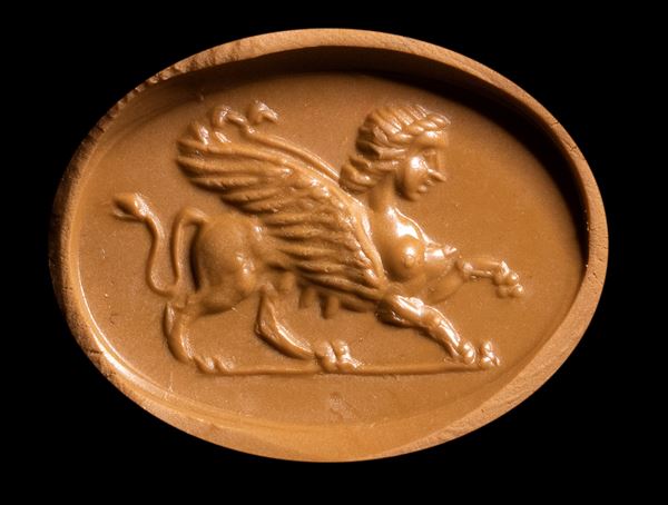 A Roman carnelian intaglio. Sphynx., 1st - 2nd century A.D.