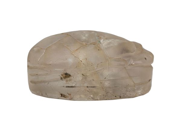 An Egyptian Late Period rock crystal scaraboid engraved in a later period. Rural scene, Scarab 664-332 B.C- intaglio 20th century circa.