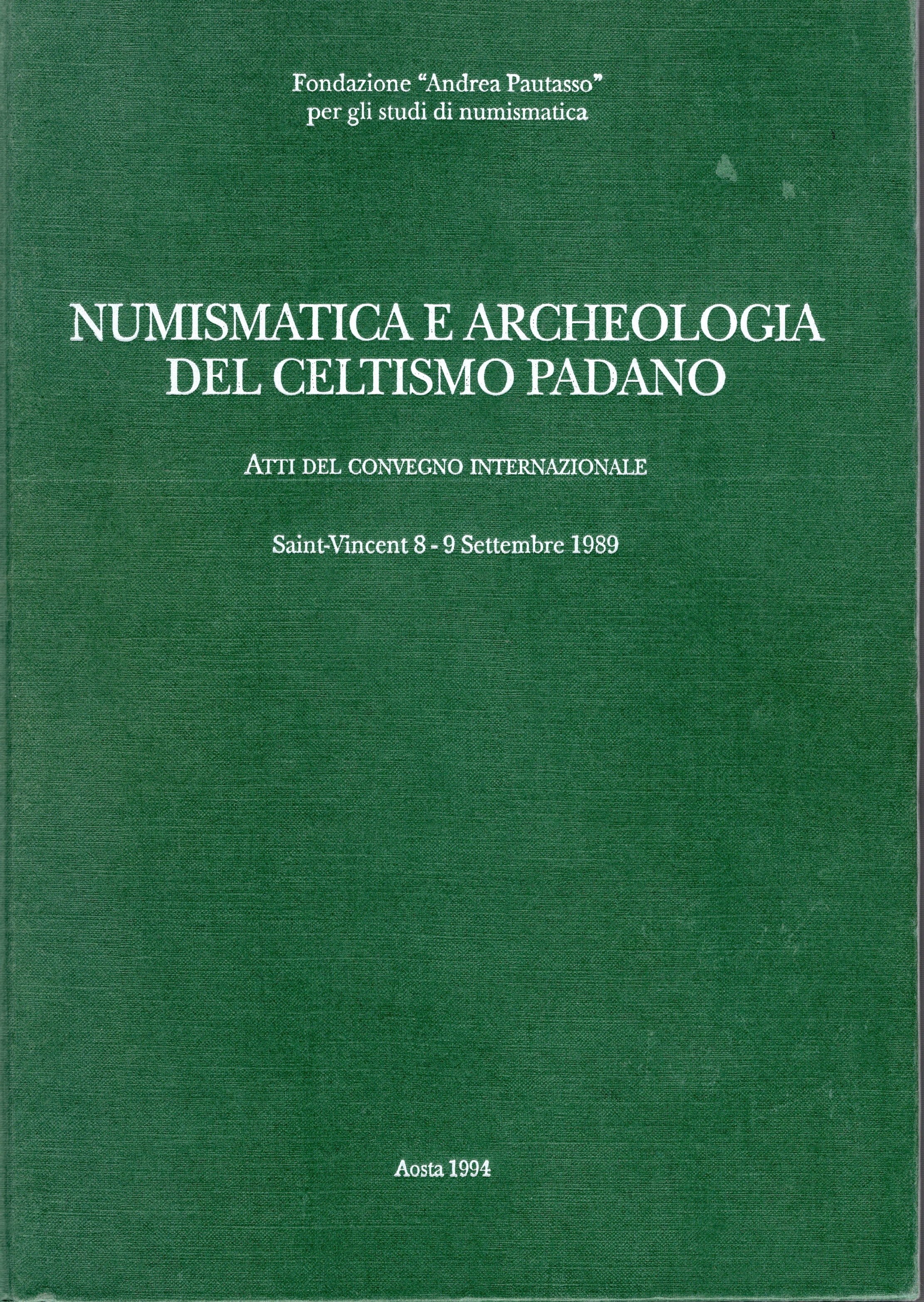 A.A.V.V. β Numismatica e Archeologia del celtismo padano. Atti conv. Intern. Saint-Vincent 8\9 Settembre 1989. Aosta, 1994. Pp. 195, tavv. e ill. nel testo. rilegatura rigida editoriale ottimo stat