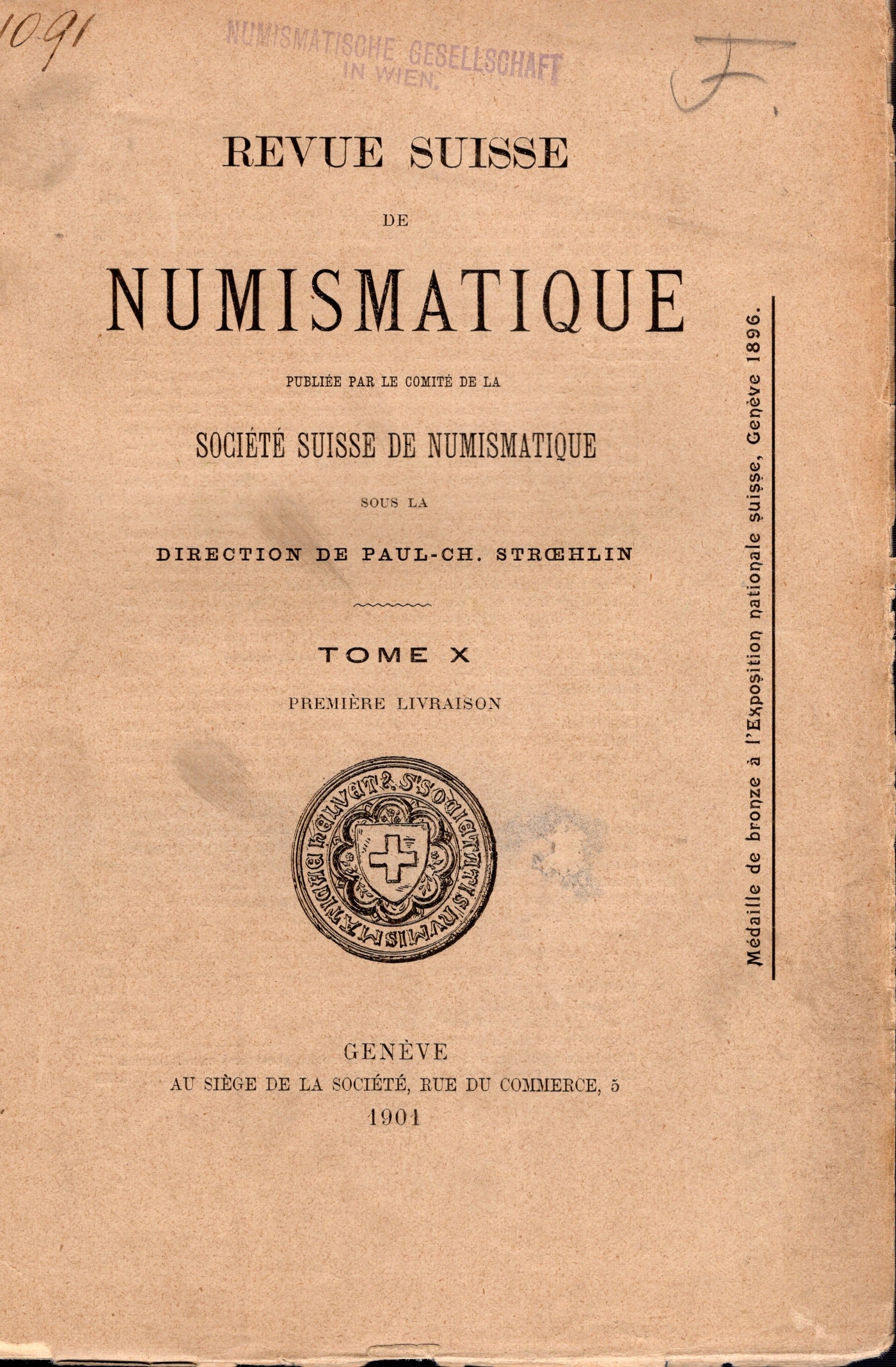 AA.VV. - Revue Suisse de Numismatique. Tome X. Geneve, 1901. pp 192, illustrazioni nel testo. brossura ed. sciupata,slegato ma in buono stato. Fasc. dedicato soprattutto alla monetazione svizzera + un importante lavoro del Forrer sugli orefici.