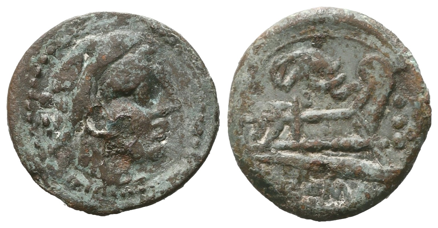 Elephant Head Series. Mint: Rome. Head of Hercules to r., wearing lion skin headdress; three pellets (mark of value) behind; Rv. Prow to r.; elephant head above, three pellets (mark of value) before, ROMA below. Crawford 262/4; Sydenham 497b; RBW 1063. VF