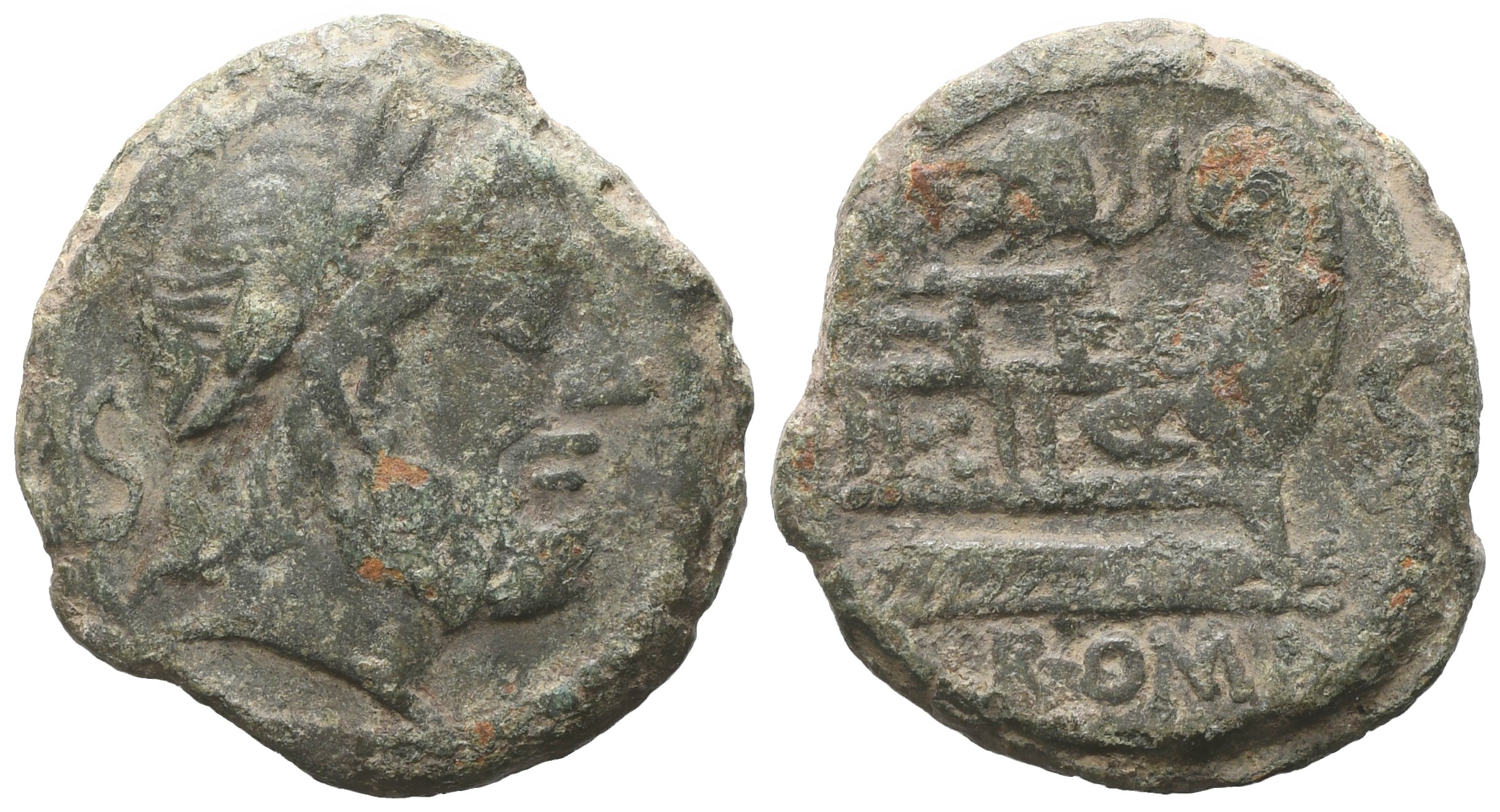 Anonymous series with elephant's head. Mint: Rome. Laureate head of Saturn r.; S (mark of value) to l.; Rv. Prow of galley r.; elephant's head right above, S (mark of value) to r. Crawford 262/2; Sydenham 497. VF