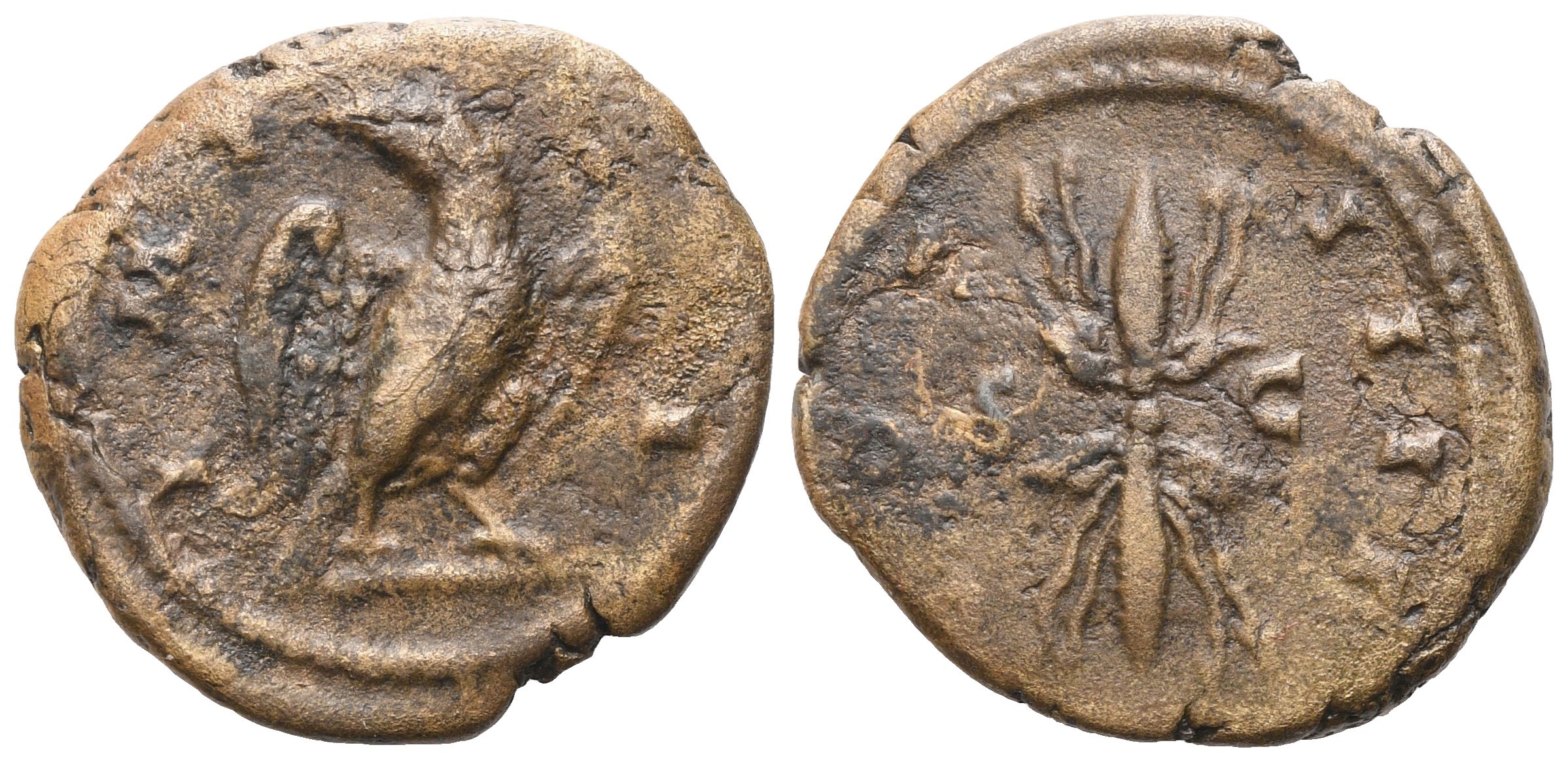 IMPERATOR II Eagle standing front, wings spread and head turned to l.; Rv. COS IIII / S - C Winged thunderbolt. BMC 1773. Cohen -. RIC 839. Light brown patina. Almost gVF