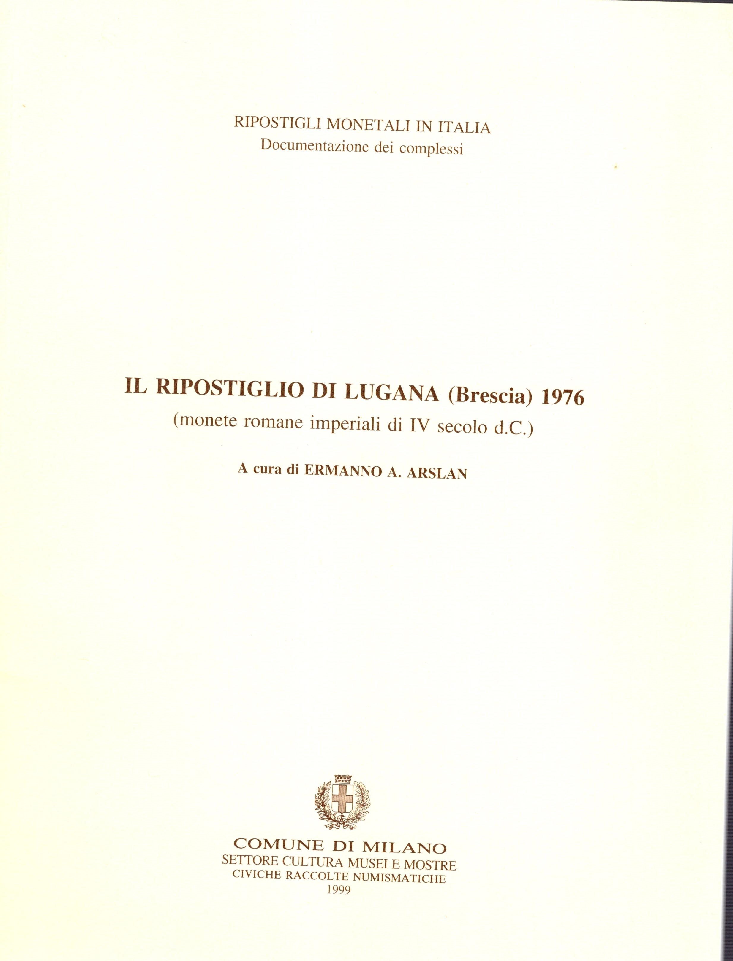 ARSLAN E.A. - Il ripostiglio di Lugana ( Brescia) 1976. monete romane imperiali di IV secolo d.C. Milano, 1999. pp 50, tavole 15. rilegatura editoriale, ottimo stato.
