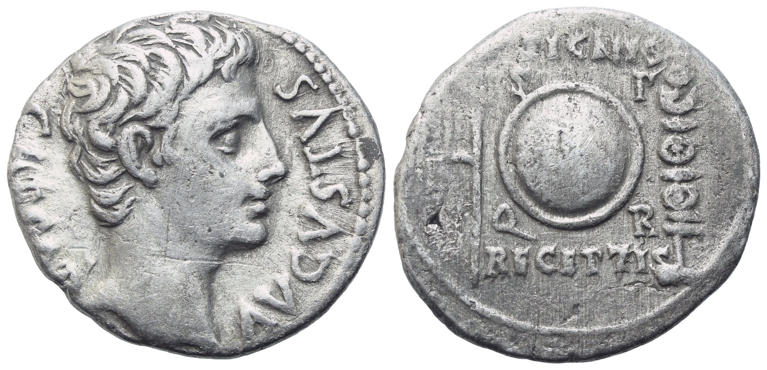 Augustus (27 BC-14 AD), Denarius, Colonia Patricia (?), c. 19 BC; AR (3,67 g; 18,5 mm; 7 h)