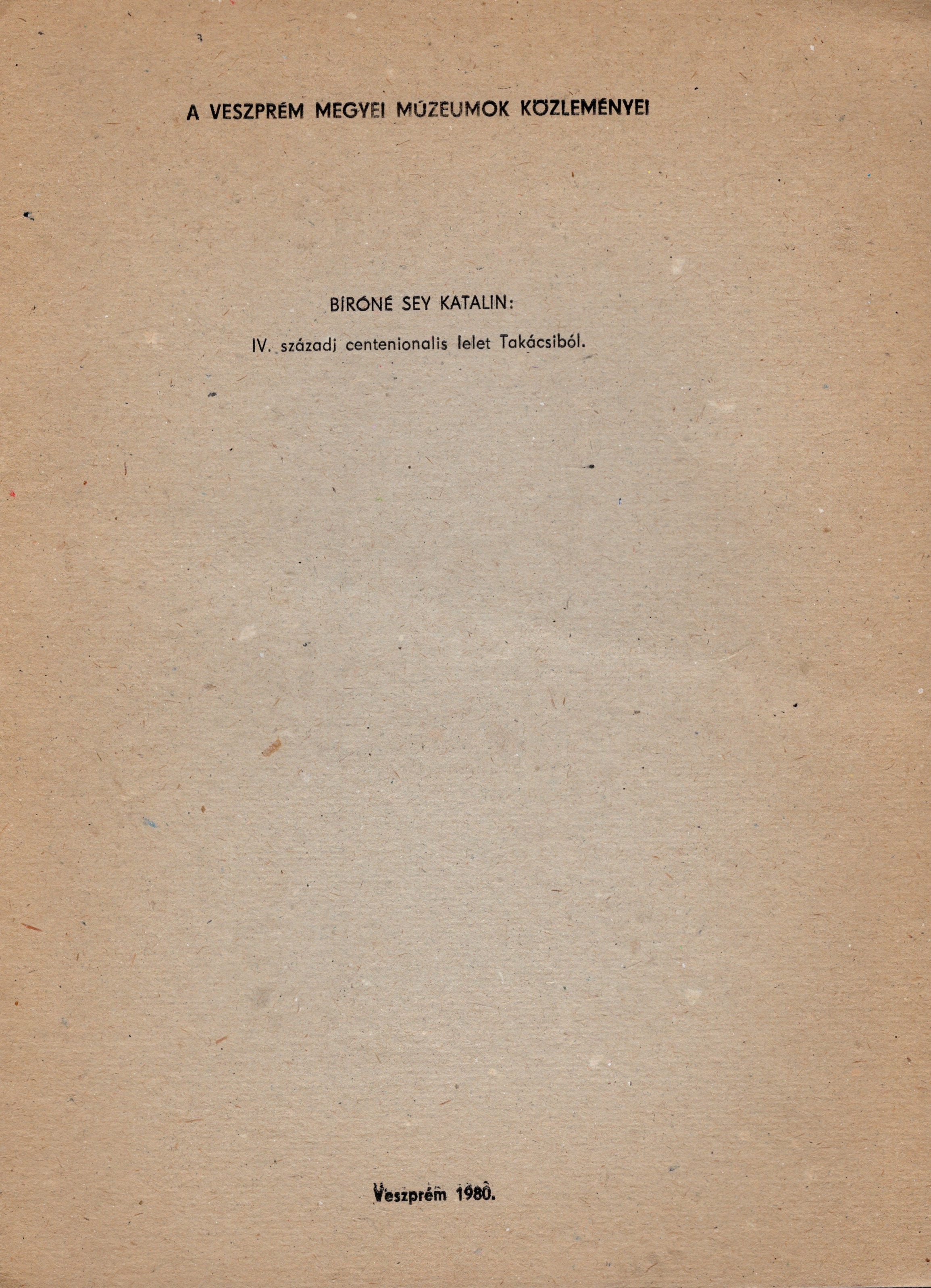 BIRONE SEY K. - A centenional find in Takacsi from the 4th century. Budapest, 1980. pp. 87 - 96, ill. nel testo. brossura ed. buono stato. raro.