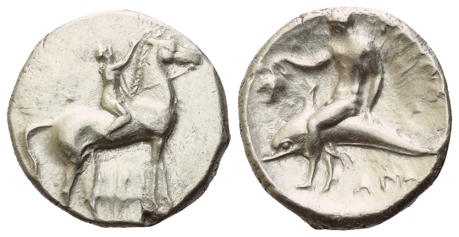 Calabria, Tarentum, Nomos, c. 302-280; AR (7,88 g; 20,5 mm; 2 h)