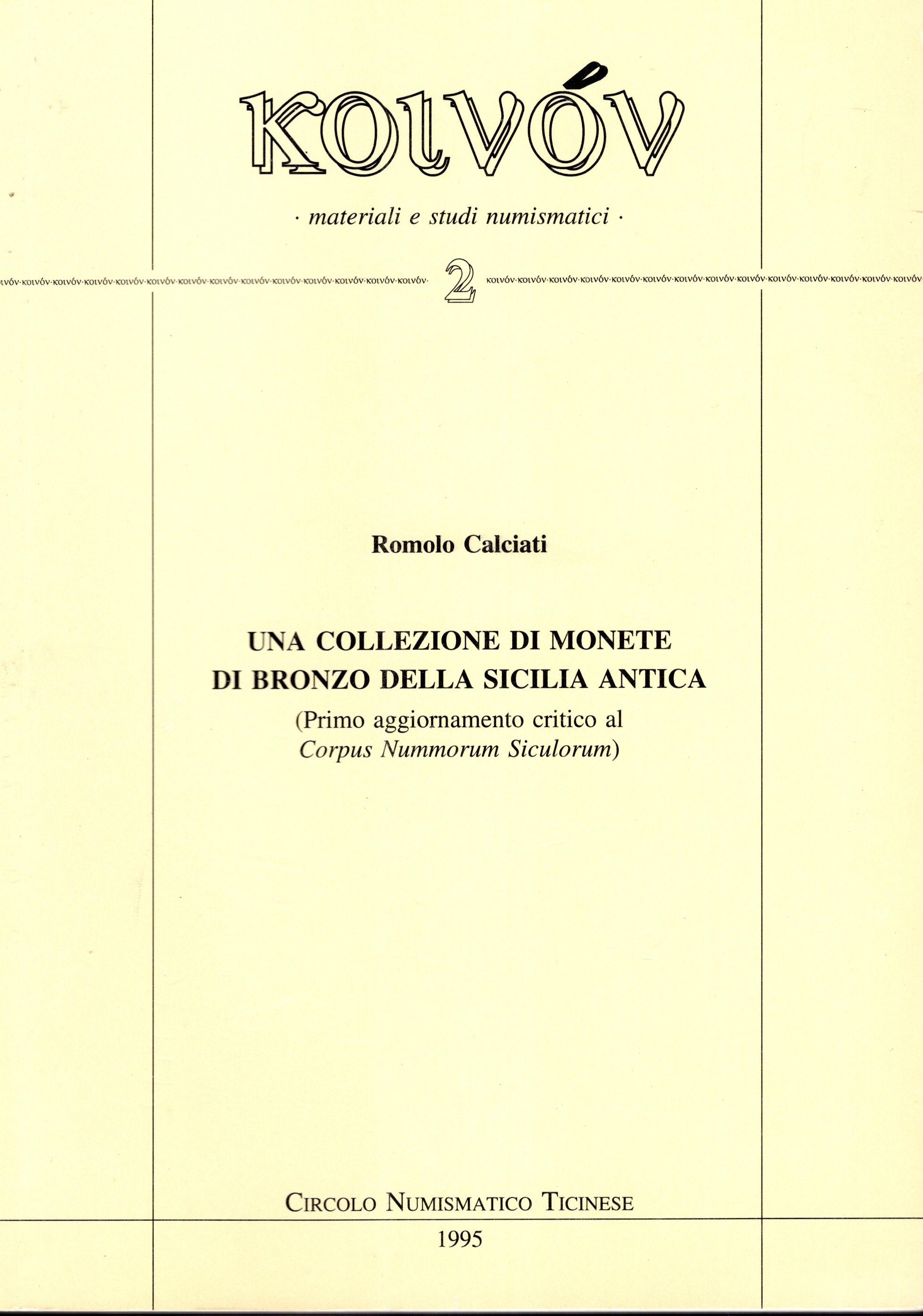 CALCIATI Romolo. - Una collezione di monete di bronzo della Sicilia antica. ( primo aggiornamento critico al Corpus Nummorum Siculorum). Milano, 1995. pp 118, 32+ illustrazioni con ingrandimenti nel testo. rilegatura editoriale, ottimo stato. importante lavoro.