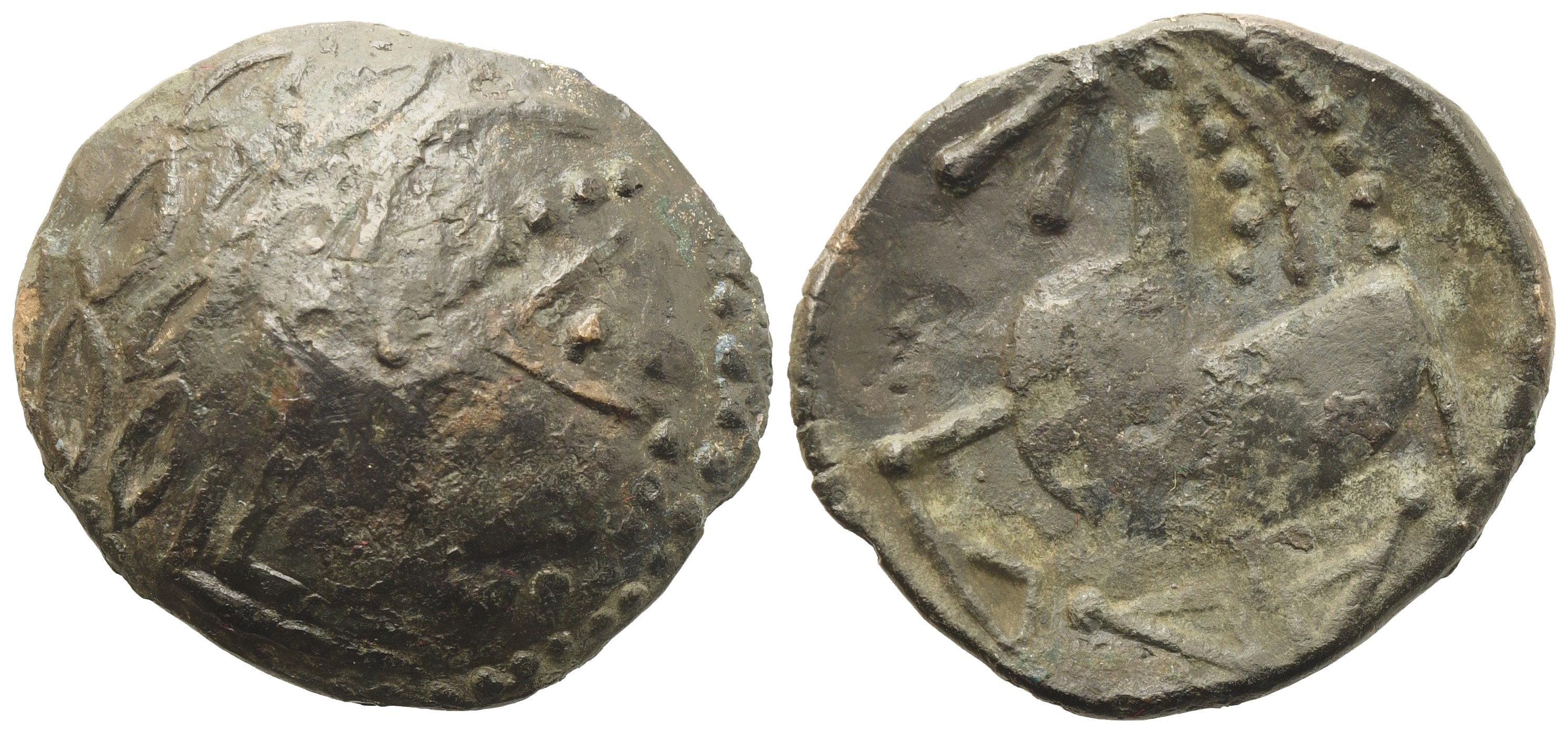 Schnabelpferd type. Imitating Philip II of Macedon. Laureate and bearded head right, Rv. Horse running left. OTA pl. 28, 326/1; Kent/Mays, BMC I, pl. 5, 78; Lanz 666. Good fine.