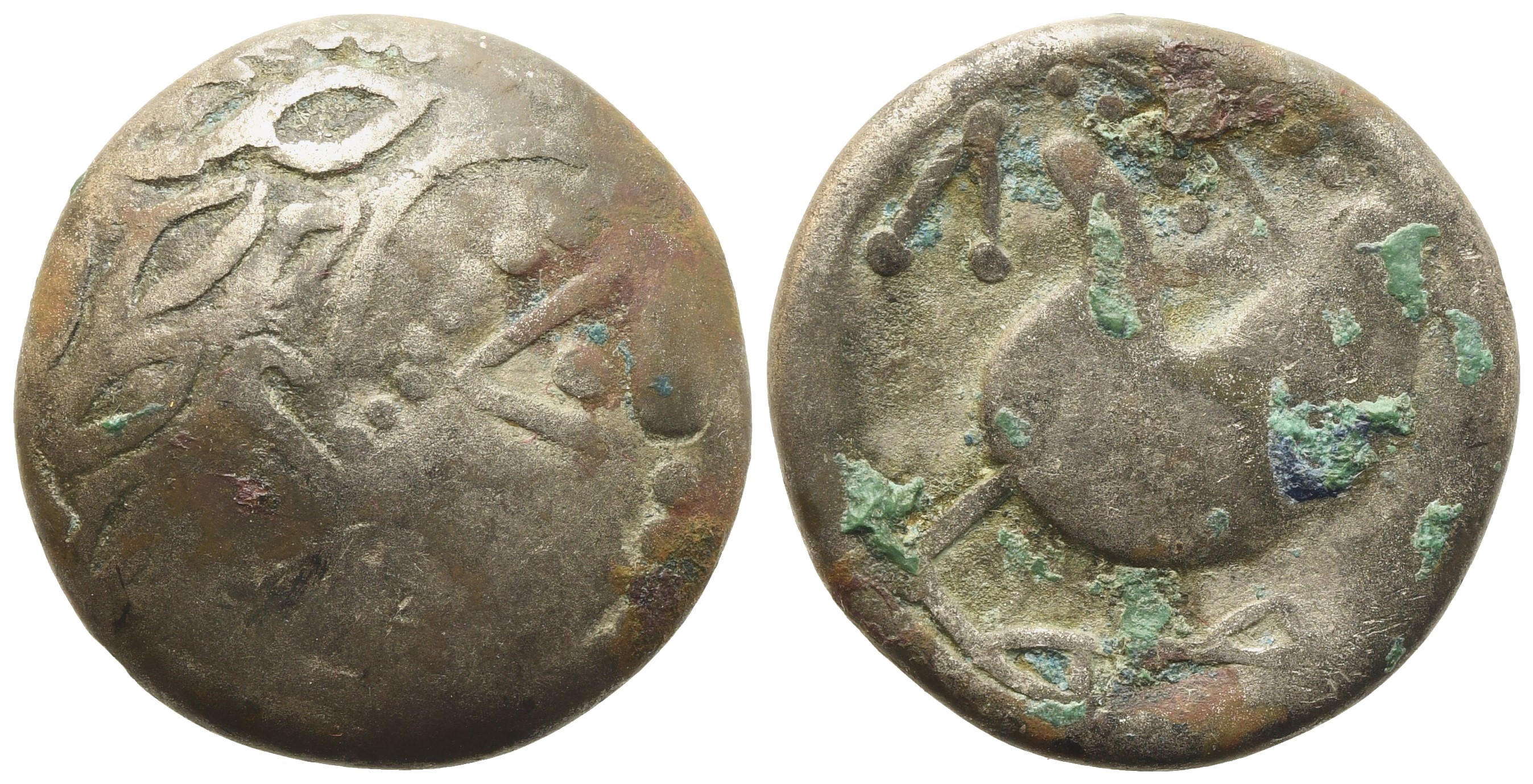 Schnabelpferd type. Imitating Philip II of Macedon. Laureate and bearded head right, Rv. Horse running left. OTA pl. 28, 326/1; Kent/Mays, BMC I, pl. 5, 78; Lanz 666. Fine. Some deposits.