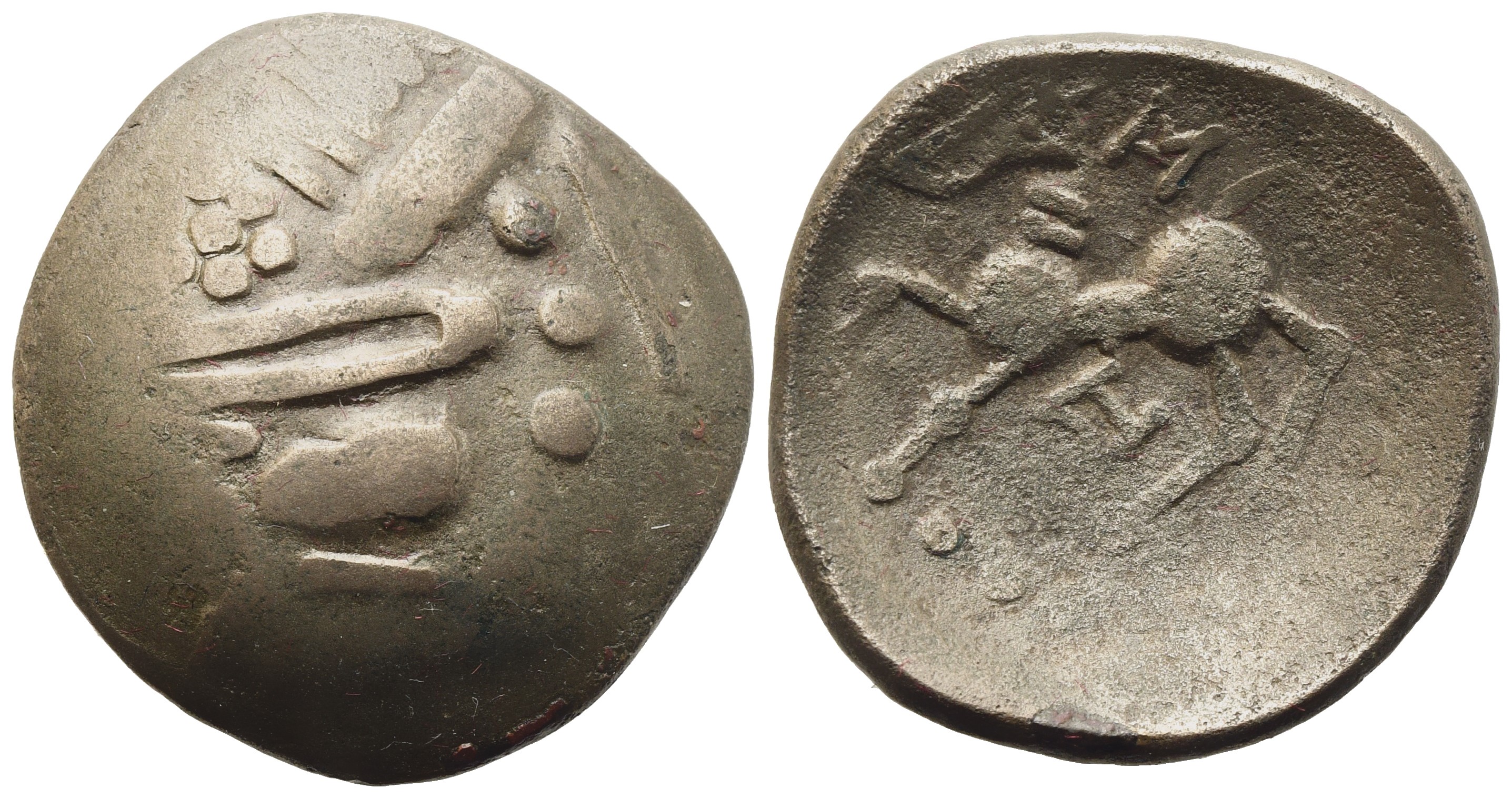 Bearded head of Zeus to right; Rv. Heavily stylised rider on horseback to left; monograms above and below. Lanz 653 var.; OTA 300/16 ff. Very fine.