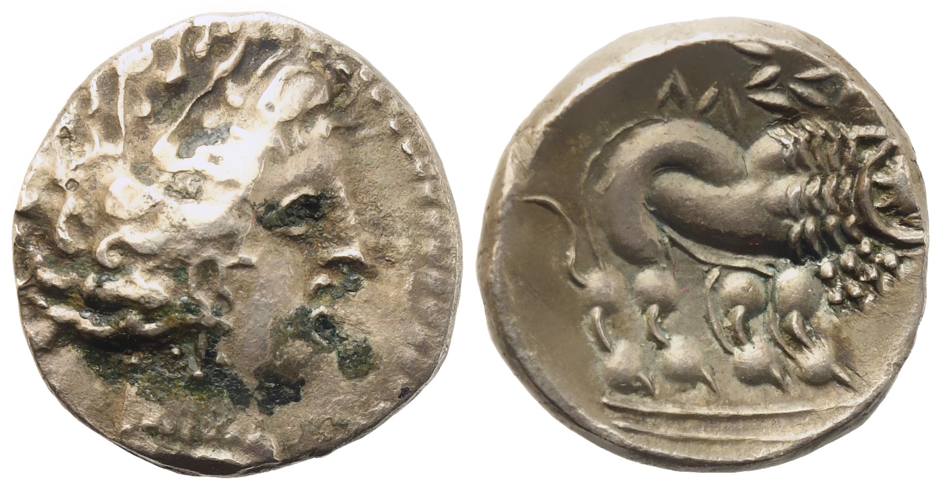 Imitating Massalia. Head of Artemis right; Rv. Lion standing right, MAΣΣA above. LT 2126; BM 3-6; Pautasso 391-410. Very fine / good very fine.