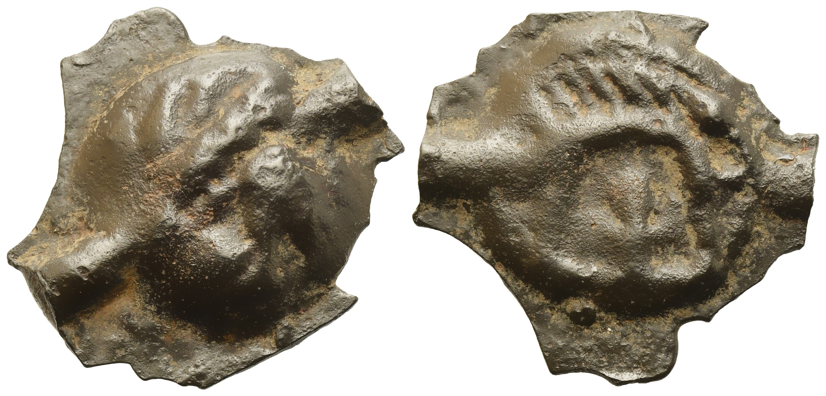 Celtic. Gallia, Leuci, Potin unit "à la tête d'indien", c. 75-50 BC (6,07 g; 21 mm)