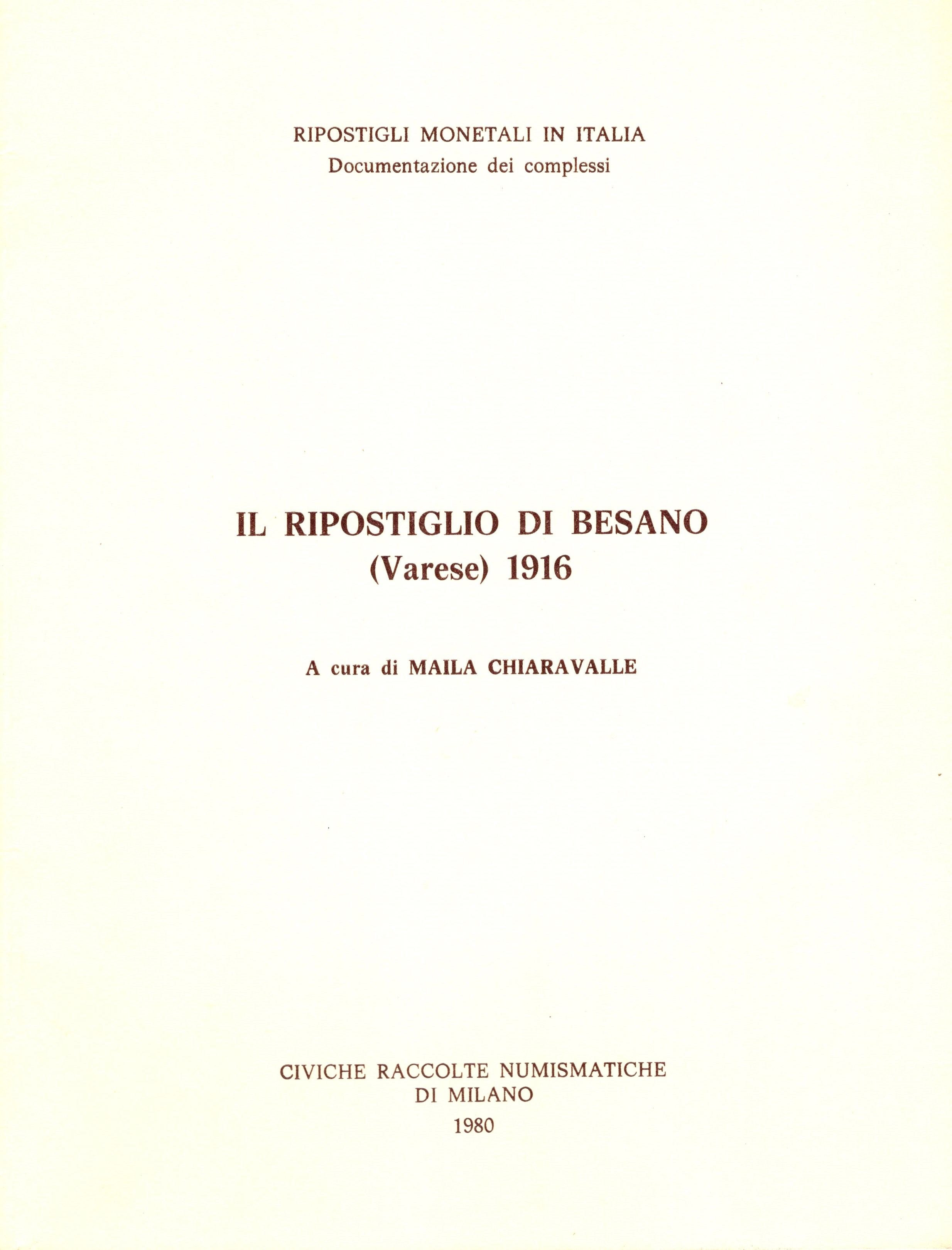 CHIARAVALLE M. - Il ripostiglio di Besano ( Varese) 1916. Milano, 1980. Pp. 17, tavv. 2. Monete romane imperiali. Rilegatura editoriale buono stato.