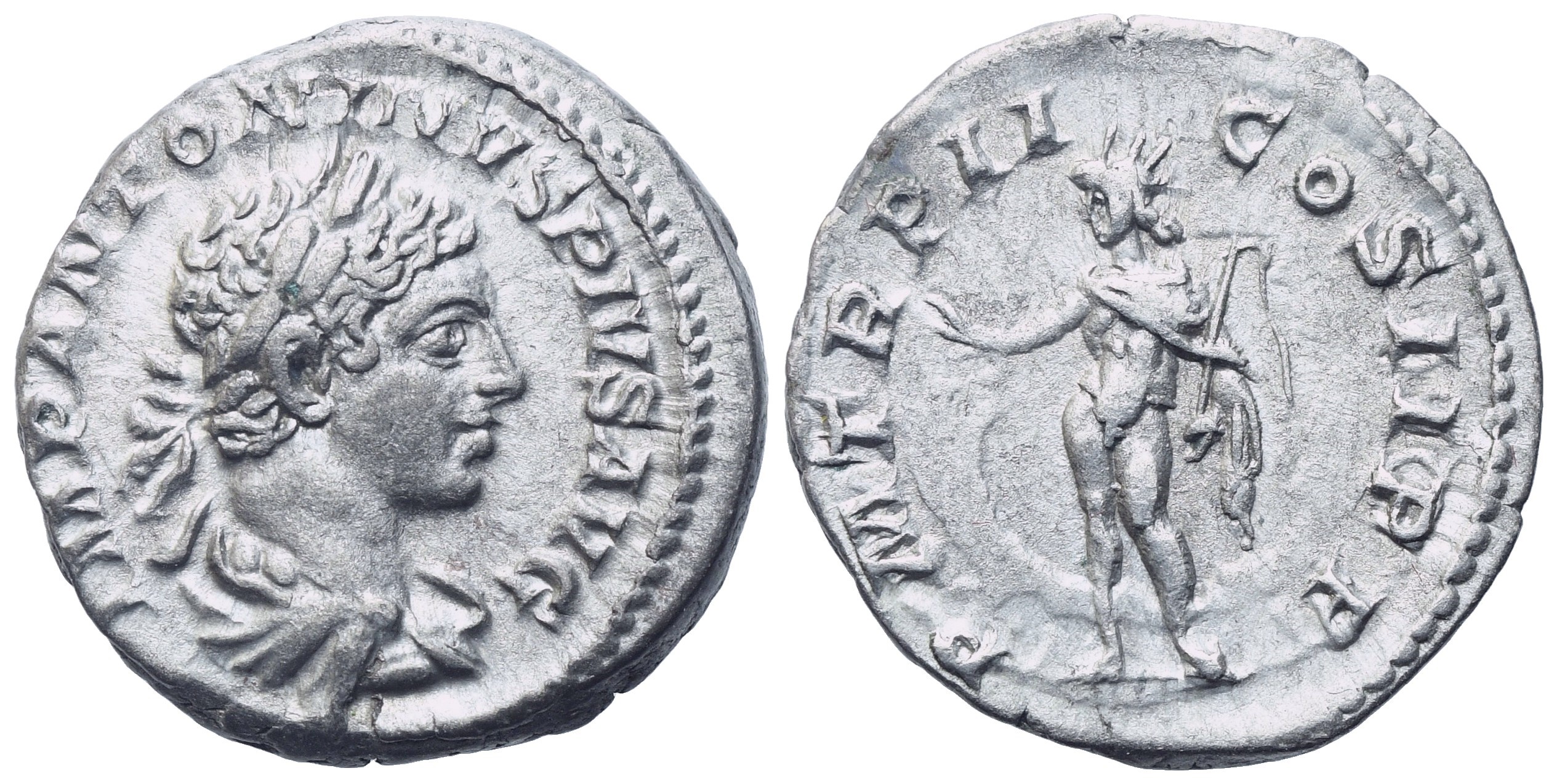 IMP ANTONINVS PIVS AVG Laureate and draped bust r.; Rv. PM TRP II COS II PP Sol radiate standing l. raising r. hand and holding whip. RIC 17; Cohen 134. Near extremely fine.